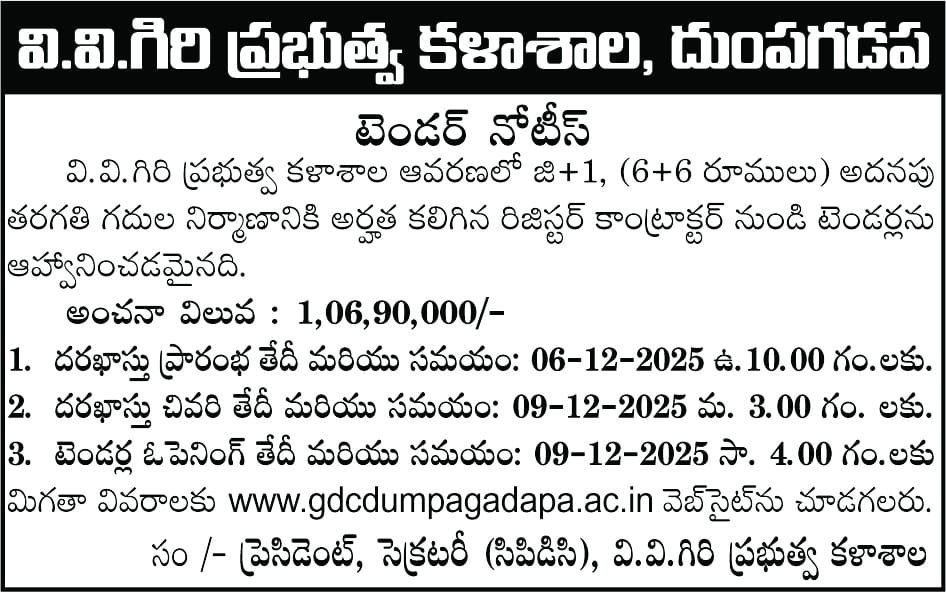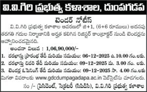 I am pleased to welcome you to the website of Varahagiri Venkata Giri Govt. Kalasala, Dumpagadapa West Godavari District, A.P., It was established in 1974 under private management with a great vision and mission to impart higher education to the economically backward region and to transform it into a knowledge society. Then Freedom Fighter & Former…..Read More